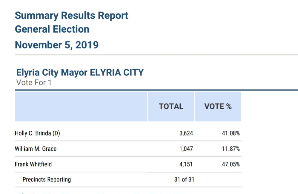 Before we get to the numbers, here’s a quick look at the vote count from Elyria’s 2019 mayoral election: